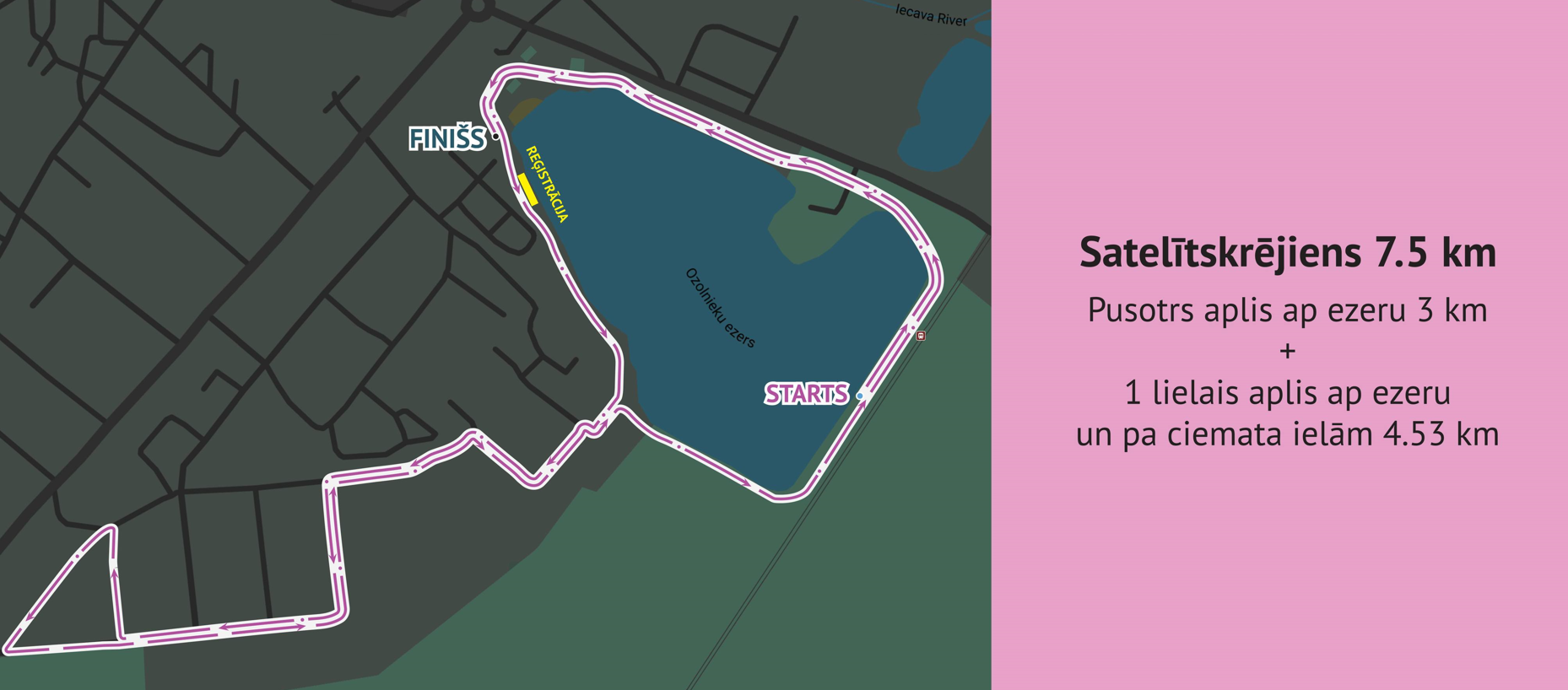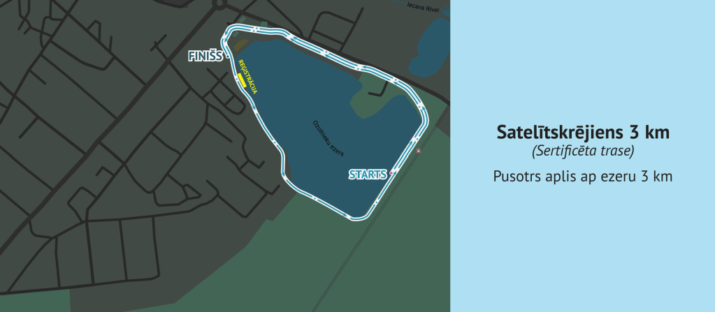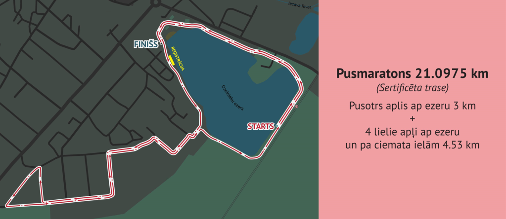 Sertificēta 21.0975km skriešanas trase, kas ved ap Ozolnieku ezeru un privātmāju ciematu – Ezera, Zvaigžņu, Rubeņu, Nākotnes un Vītolu ielām. Starts atrodas netālu no Ozolnieku dzelzceļa stacijas, finišs netālu no veikala “Elvi”.