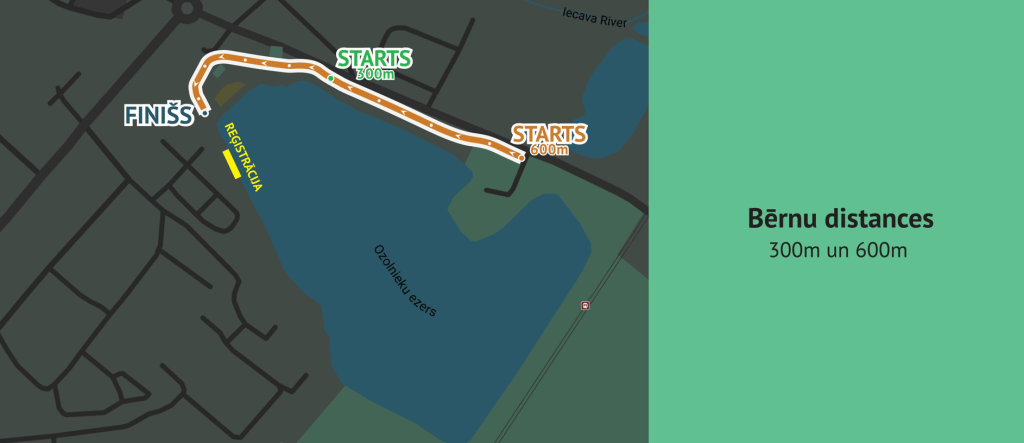 - Bērnu distance ~300 m un ~600 m. Bērnu skrējieni bez čipa un laika kontroles.
