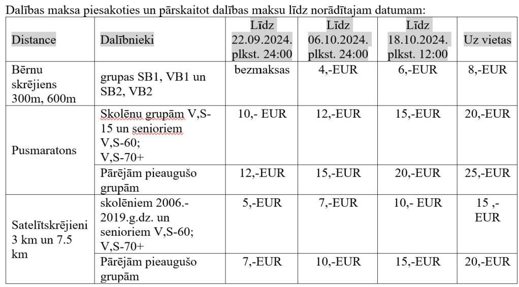 mērķī veicamās distances, piemēram, “Pusmaratons”, vai “Satelītskrējiens 3 km vai 7.5 km”,